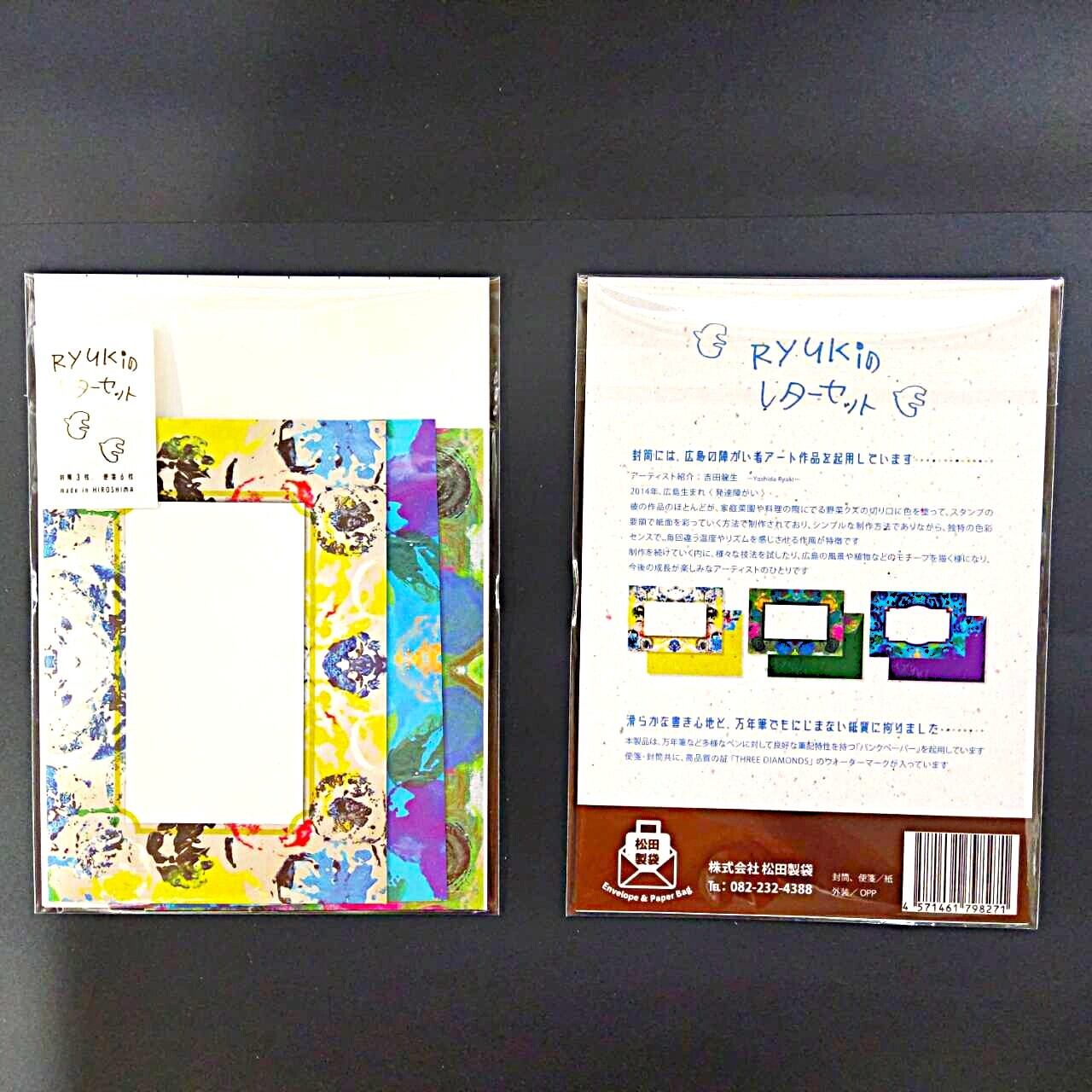 『Ryuki』のレターセットは、広島で生まれ育っている障害を持った小学生にデザインして頂いています。野菜の切り口に絵の具を付けスタンプの要領でデザインされています。シンプルな方法ですが、独特な色彩センスで温度やリズムを感じさせる作風が特徴です。紙質にもこだわり、万年筆にあった紙を選定しており、書き心地の良さが実感できる高級感のある仕上がりとなっています。手紙を書く時間は、心に残る特別なひとときとなるはずです。